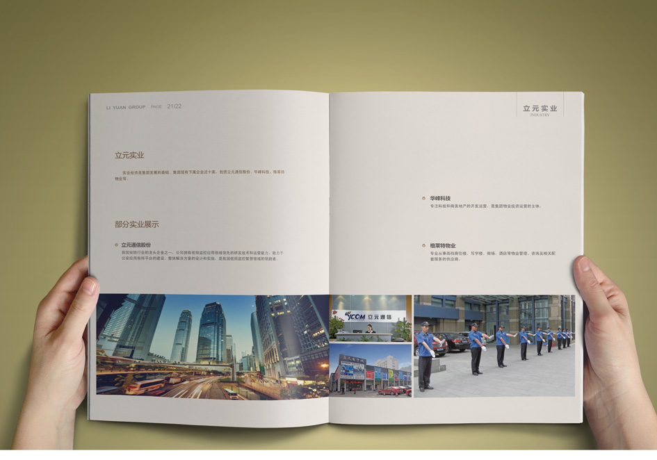 立元集團(tuán)創(chuàng)建于1998年,旗下?lián)碛?0多家控股企業(yè),參股近百家上市、擬上市企業(yè),近千名員工,業(yè)務(wù)涵蓋各類金融投資、房地產(chǎn)開發(fā)、電子通信三大板塊。銘陽廣告公司先后為其提供集團(tuán)宣傳冊設(shè)計、團(tuán)隊攝影、資本投資畫冊設(shè)計、員工手冊設(shè)計制作、物業(yè)公司宣傳設(shè)計、大型主題會議設(shè)計、PPT設(shè)計等。
